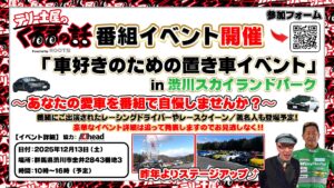 2025.10.31 12月13日「テリー土屋のくるまの話 」番組ファンミーティング& 🚗くるまの置き車イベント in 渋川スカイランドパーク✨開催決定‼️ category: イベント 📣今年も開催決定‼️ 「テリー土屋のくるまの話 」番組ファンミーティング& 🚗くるまの置き車イベント in 渋川スカイランドパーク✨ 昨年大盛況だったあのイベントがパワーアップ💥 さらに….次々と超豪華発表も予定しています🎤 抽選で豪華プレゼント🎁もあるかも… ぜひ会場で体感してください‼️ 📅2025年12月13日(土)時間:10:00-16:00《予定》 📍群馬県 渋川スカイランドパーク 置き車展示参加申込みフォーム⬅️はこちらをタップ 皆様のご応募お待ちしております🙇🏻 BACK