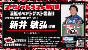2025.11.02 🚗💨ゲスト第2弾発表💨🚗「番組公開収録&置き車イベント in 渋川スカイランドパーク」 category: イベント 12月13日(土)開催 「番組公開収録&置き車イベント in 渋川スカイランドパーク」 スペシャルゲスト2人目は── 🔥 新井 敏弘 選手@toahi_Arai(ラリードライバー) 🔥 番組でもおなじみ世界のラリースト 展示車両は当日会場来てからのお楽しみ‼️ 🎟置き車展示申込はこちら🎁豪華抽選会も予定! ▶️ forms.gle/rAHjeBpseALcW8… BACK NEXT