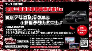 2025.11.20 📢《ブース出展情報》📢「#テリー土屋のくるまの話 」番組ファンミーティング& 🚗くるまの置き車イベント in 渋川スカイランドパーク✨ category: イベント 群馬三菱自動車販売株式会社様の出展が決定! 当日は── 「デリカD:5」と、「デリカミニ」を展示。 アウトドアも街乗りも楽しめる、三菱らしい“走破力と遊び心”をぜひ会場で体感ください! 📢 参加申込は締切間近! ▶️ forms.gle/rAHjeBpseALcW8… ⚠️ご検討中の方はお早めにお申し込みください。 BACK NEXT